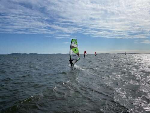 4. Kurs Die Ausfahrt richtet sich an Windsurf-Einsteiger ohne jegliche Vorkenntnisse. Abhängig von den Wind- und Wetterbedingungen findet ab Sonntag nach Möglichkeit täglich ein Windsurf-Einsteigerkurs statt. In zwei 9-er Gruppen werdet ihr jeden Tag ca. 1,5 Stunden mit 1-2 Kursleitern auf dem Wasser sein. In den kursfreien Zeiten könnt ihr das Windsurf-Material noch nach Lust und Laune zum Üben des Gelernten nutzen.